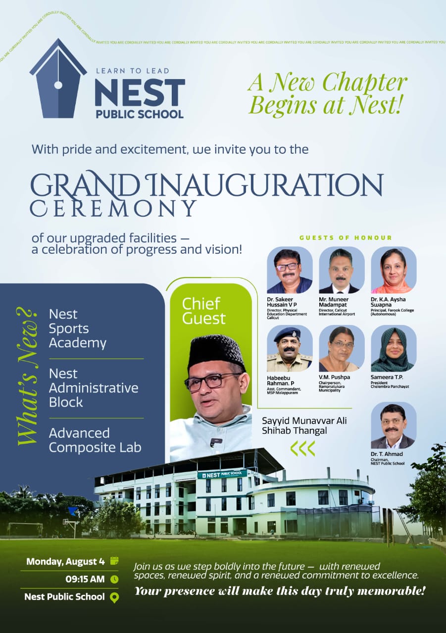 We Nurture Future Nest Public School is founded by a team of passionate community reformers under the aegis of Noble Education and Service Trust (Regd.) since 2004. Nest is all set with international standard of learning ambience to impact knowledge in the global standard. It strives for designing credible and completed generation, who are enlightened with spiritual values and empowered with modern education. The prime objective of the trust is to impart knowledge and skills in the right perspective. School has been declared and certified as a minority educational institution, covered under section 2(g) of the Government of India, National Commission for Minority Educational institutions act 2004